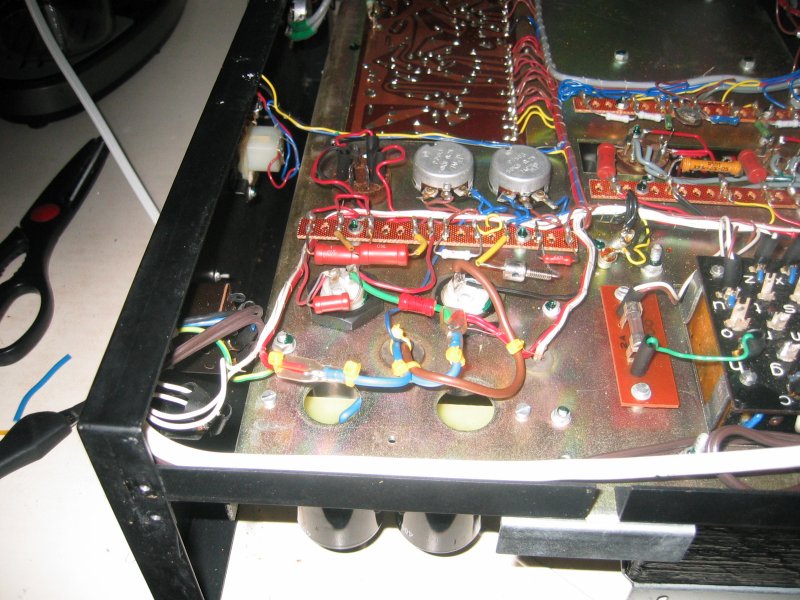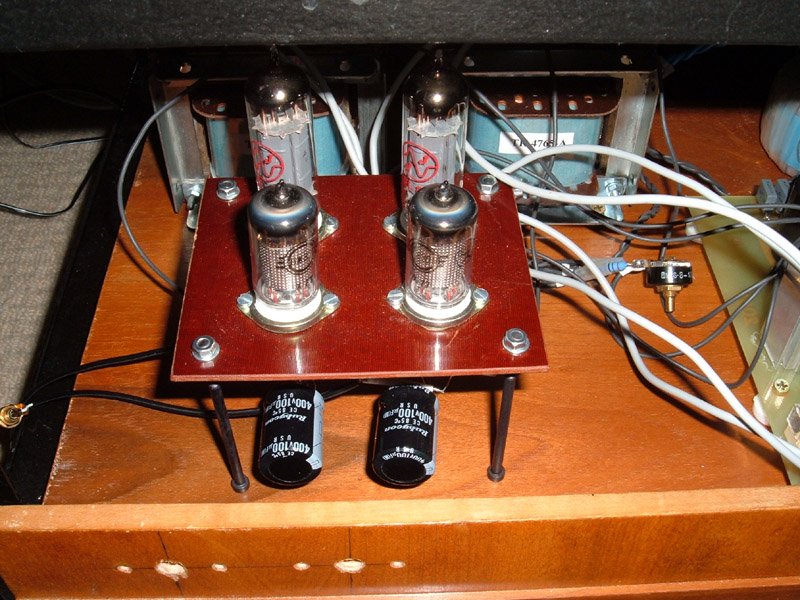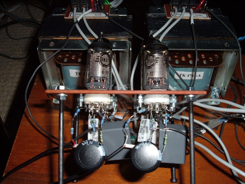 Az erosito nincs mar a dobozaban, a panel megegett, ugyhogy szetkaptam es ujraepitettem a vegfokot. Valogatott JJ csoveket vettem, sajnos nem volt mas. (sokat adnek 4db telefunken v siemens EL84-ert!) Nekem kicsit magashianyosnak tunik. KEF D160-as dobozaim vannak es Audionote konverter utanepites, 5687-es csovekkel. Ja, csak ugy rutinbol megmertem a kimeno ellenallasat es tizenegynehany ohm elteres van a tekercsek kozott... Uzem kozben sem egyforma a feszultseg a tekercseken. Nincs elkotve,nem melegszik, remelem nem menetzarlatos...