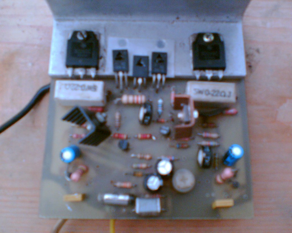 Sima AB osztályú végfok! Csak le van szedve a hűtőbordáról, meg ha jól látom egy-két tranzisztor már hiányzik belőle! geriromeo! Ilyen életlen kép alapján lehetetlen segíteni, így te otthon hamarabb vissza tudod rajzolni!