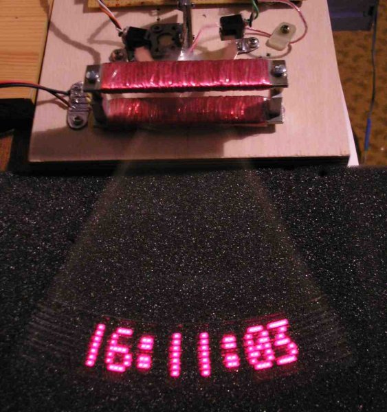 Leszűrve a két utóbbi hozzászólásomban a kisérletek tanulságait, a kövezkezőkre jutottam: - Csak kompromisszumokkal lehet nagyobb frekvenciával, (hosszabb kar, /200-250mm/, plusz a laprugó), és nagyobb amplitudóval hajtani a kart, mert a rugólemez sajna hamar elhasználódik, eltörik! (Itt 48 óra alatt!). Ezt nagyon sajnáltam, mert igazán tökéletes kijelzést láttam ezzel az eszközzel. - Elegendő a 15-18Hz-es frekvencia, és az "egykapus" optikai vezérlés is, max. 145mm kar, plusz rugólemezzel. Itt még jól tűri a 0.3mm vastag acéllemez a rezgést. Van olyan működő órám, (asztali, távírányitós), amely január elejétől tökéletesen megy éjjel-nappal, 16Hz-es rezgési frekivel. Sziasztok.