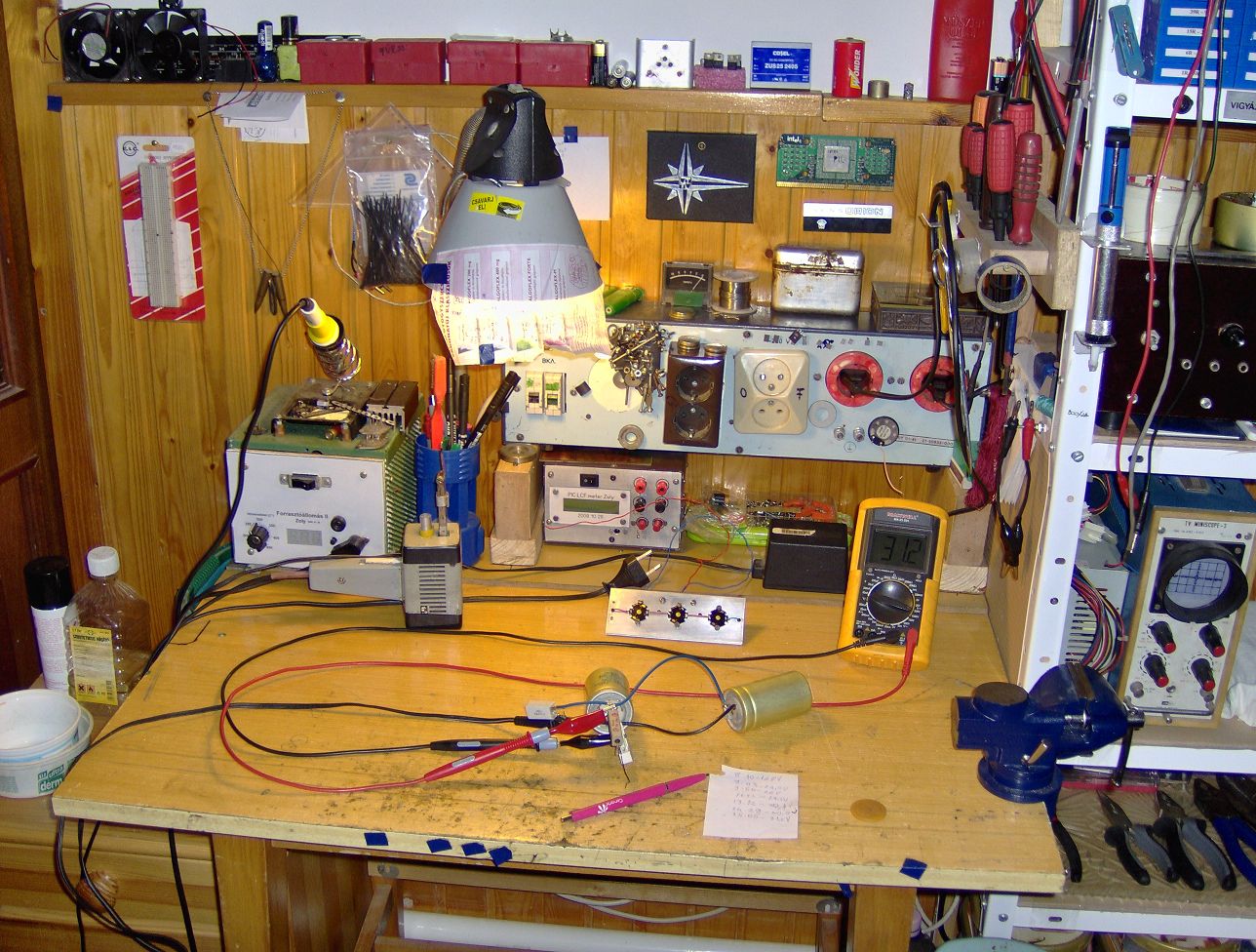 A napokban építettem egy polcot a sok kacatnak, már nem volt elég az egymásra pakolás módszere, gondoltam lekattintom, végre tudtam szerezni egy valamire való fényképezőt. Itt épp egy FBI ledes villogót építünk a barátommal, tehát nagy rend nincs épp munka közben.