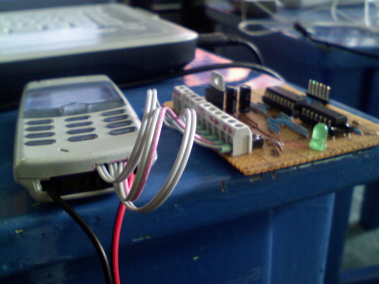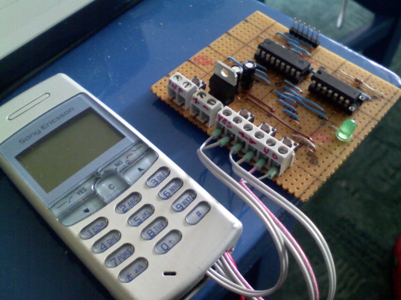A panelról lemaradt egy csatlakozó, amivel a telefont táplálnám. Azóta pótoltam, méghozzá úgy, hogy a programozó tüskesorra akasztom a telefon tápvezetékeit. Ez a képeken persze nem látszik.