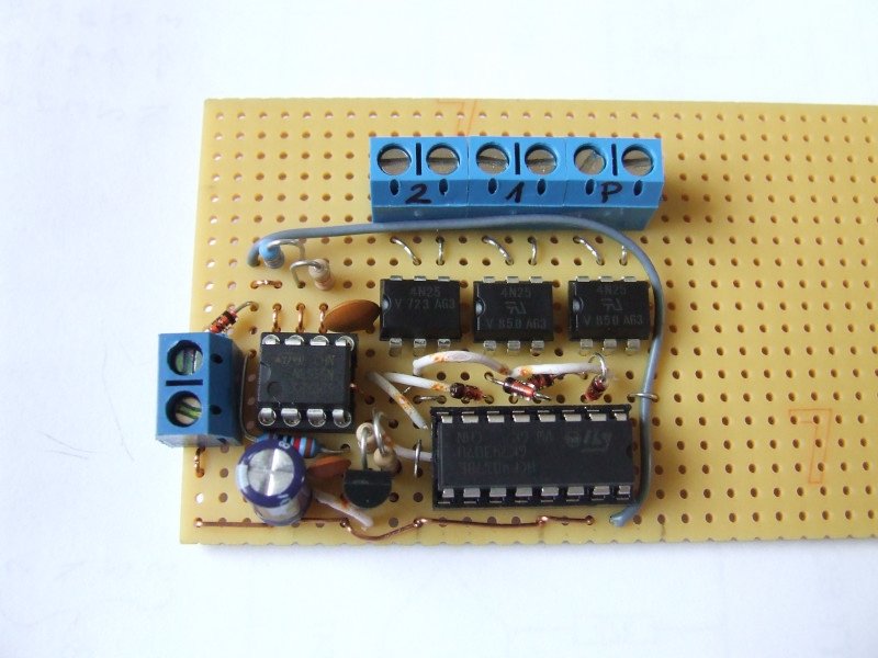 Én is elkészítettem a telefonhívó elektronikáját. Hasonló a dolog, mint Googa megoldása. Ez Nokia telefonra való, én 3510-el fogom használni. mivel nem mélyedtem bele a PIC rejtelmeibe, más megoldást használok. A kiindulási alap az volt, hogy két számot tudjon hívni a riasztó. Egy 555-ös IC adja az órajelet, ami kb. 6 mp-enként lépteti a 4017-est. A 4017-es optocsatolókat hajt, aminek a tranzisztor kimenetei lesznek a telefon gombjaira ráforrasztva. Ahhoz, hogy a gombnyomások közt legyen szünet, a bc182-es, csak 3mp-ig hajtja meg az optókat. A riasztó úgy van beállítva, hogy 1 percig adjon 12v-ot a kimenetre, ez pont elég idő két szám hívására, ami egy teljes működési ciklus a 4017-es 10db. kimenetén. 1-es kimenetnél (ami a 4017-es 2-es lába) piros gomb 3mp-re nyomva, majd 3mp-re elengedve. Azért a 2-es láb, mert ha tápfeszt kap az áramkör, mindig a 2-es lábbal indít. Következő impulzusnál valamelyik gyorshívógomb nyomva (4017-es 4-es láb). Ezután 3 kimenet üresen jár (18mp), addig hívja a számot a telefon. Következő kimenethez érve (4017-es 5-ös láb), újra nyomja a piros gombot, ezzel megszakítja a hívást. Most jön a 4017-es 6-os lába, ami egy újabb gombra kötve hív egy másik számot gyorshívással, kb. 20-22mp-ig. Ha megszakad a folyamat, akkor sincs gond, mert mindig a piros gomb lenyomásával indul, ami töröl mindent a kijelzőn. Meg lehetne oldani több szám hívását is, akkor a többi kimenetet is lehet használni. Majd később felteszem a kapcsolási rajzot is, hátha valaki még meg szeretné építeni.