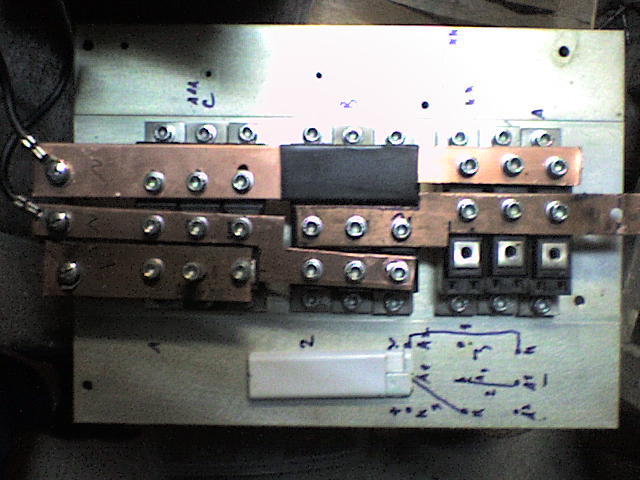 Ezek 1200v 50 A "diódák" (200A peak-ez volt az adatlapon). Azóta is működik, de megszóltak már érte hogy ez így nem jó. Ez még dobozolás előtt készült, azóta elég sokat hegesztettek vele, kölcsön van adva egy vállalkozónak.