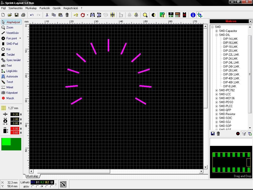 Használtam én anno a front designert, de az nem volt hivatalos, a sprintlayoutot megvettem és csak könnyíteni szeretném a munkámat, ha lenne valakinek makrója a sprintlayouthoz, főleg 270 fokos potira, az lenne a legjobb. A sok fokbeosztással van a bajom, mert annyira még nem megy a layout használata.
