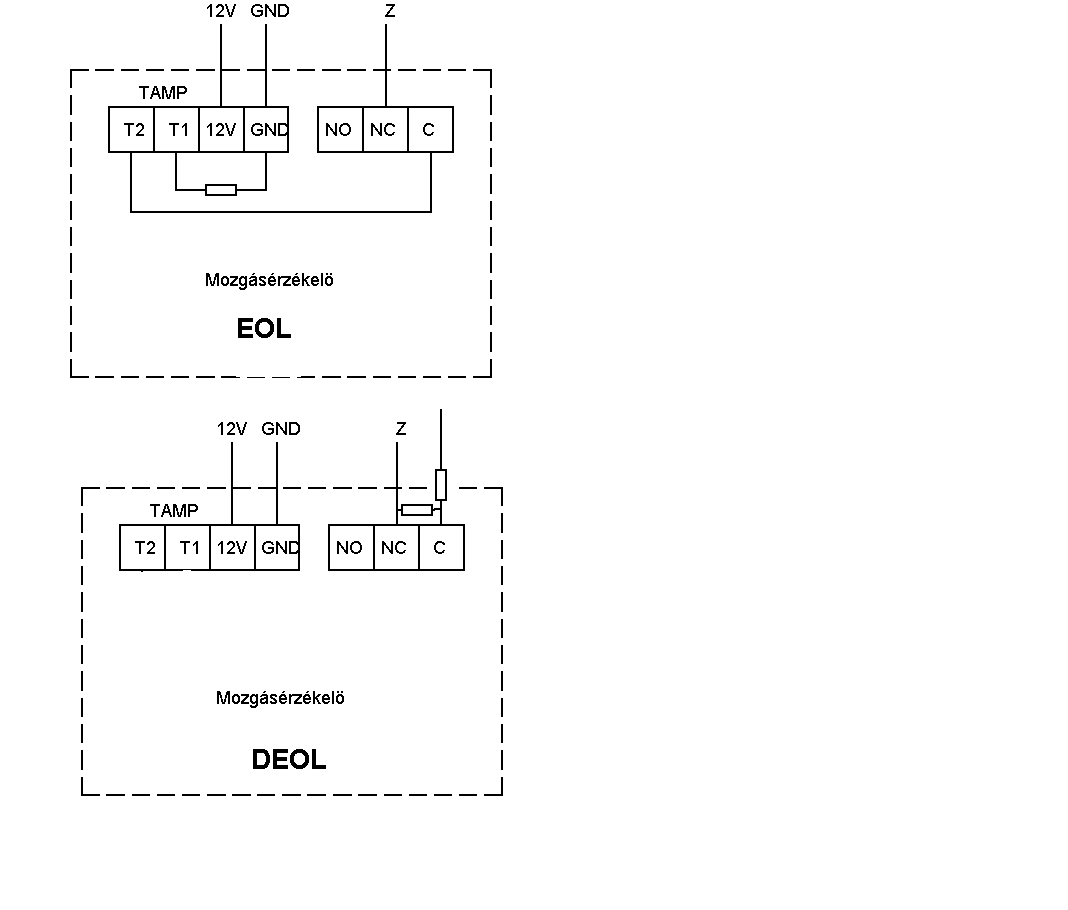 Sajnos csak ma reggel olvastam az ötleted. Tegnap vezetékeltem be az összes érzékelőt. Találtam egy zónabekötési vázlatot, és a következőképpen kötöttem be (erzekelo_DEOL_2) . Segítsetek , hogy jól valósítottam-e meg a sematikus rajzot. A Te általad leírt is szinta ua. , csak a "C" és "NC" pontoknál van különbség. Azt mégegyszer hagy mondjam el, hogy teljesen amatőr vagyok az elektronika területén, amit nagyon sajnálok. De gondoltam nem fogok 80 - 100 EFt - ot fizetni a bekötésért. A programozást meg hátha meg tudom csinálni (Programozó vagyok) . Üdv: Józsi