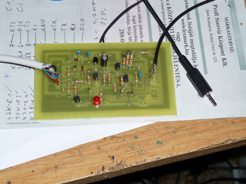 A kép baloldalán lévő kábel,a soros portra csatlakozik,a 2,5mm es jack,megy a mikrofon bemenetére.