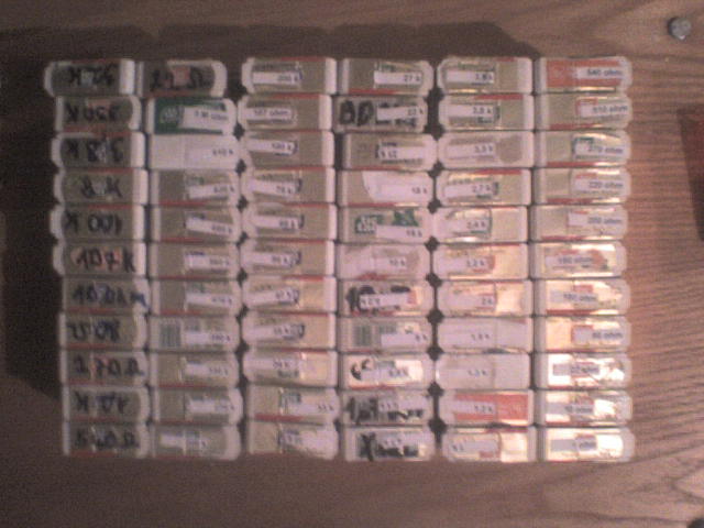 Én lassan az ömlesztésből átpakolok kis üvegcsékbe(baba étel üveg), rendezés kondik: feszültség szerint, csatlakozók felhasználási cél szerint. Amiből sok van annak külön üveg jár, amiből kevés annak pedig az ömlesztés hasonló alkatrészekkel. Beépítés előtt mindent tesztelek! Bevált még a szószos üveg is, új ellenállássor tic taccos dobozba rendezve, fajták szerint. Sajnos a méhtelepre nem engednek csak úgy be mint régen, én volt hogy hegesztőtrafót hoztam onnan(annak használom), de volt hogy 80 ft/kg ért két hatalmas 500mm hűtőtornyot, ventillátorral óriás ipari 100A FET-ekkel... Nos régi fekvő számítógépek doboznak nagyon jók, ezeket gyűjtöm.