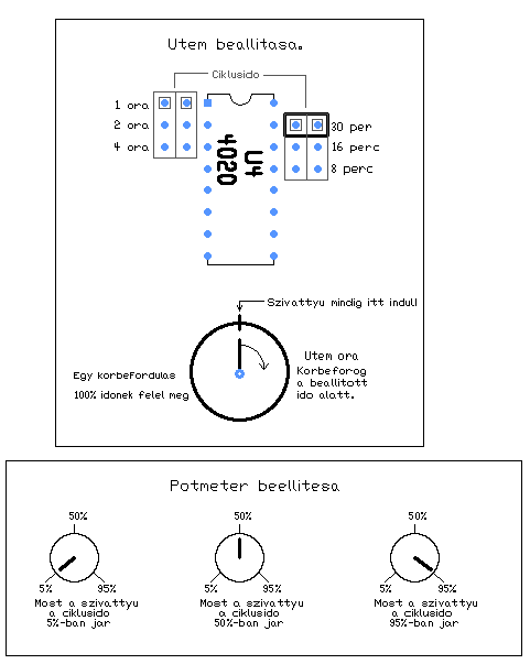Külön kell beállítani a működési ciklusidőt (binárisan lehet), majd a potival beállítod a működés és szünet arányát, a ciklusidőn belül.