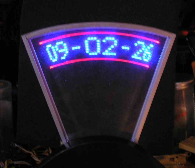 A módosított órám 4 másodpercenként cseréli a digitális kijelzésű dátumot a hét napja kijelzésével. A prop.asm -ben van két rutin a kiíratásra DTime: az idő kiíratása a felső részen, DDate: a dátum kiírása az alső részen (fordított sorrenben, vízszintesen és függőlegesen tükrözött karakterekkel) Amennyiben a LoadBCDDate subrutint átalakítjuk a LoadBCDTime mintájára a dátum kijelzés is a felső rész formátumában áll elő. A váltogatáshoz csak annyit kell még tenni, hogy a second2 változó valamelyik bitjétől (nálam 3) függően a LoadBCDDate vagy a LoadBCDTime rutint kell meghívni. Sok sikert...