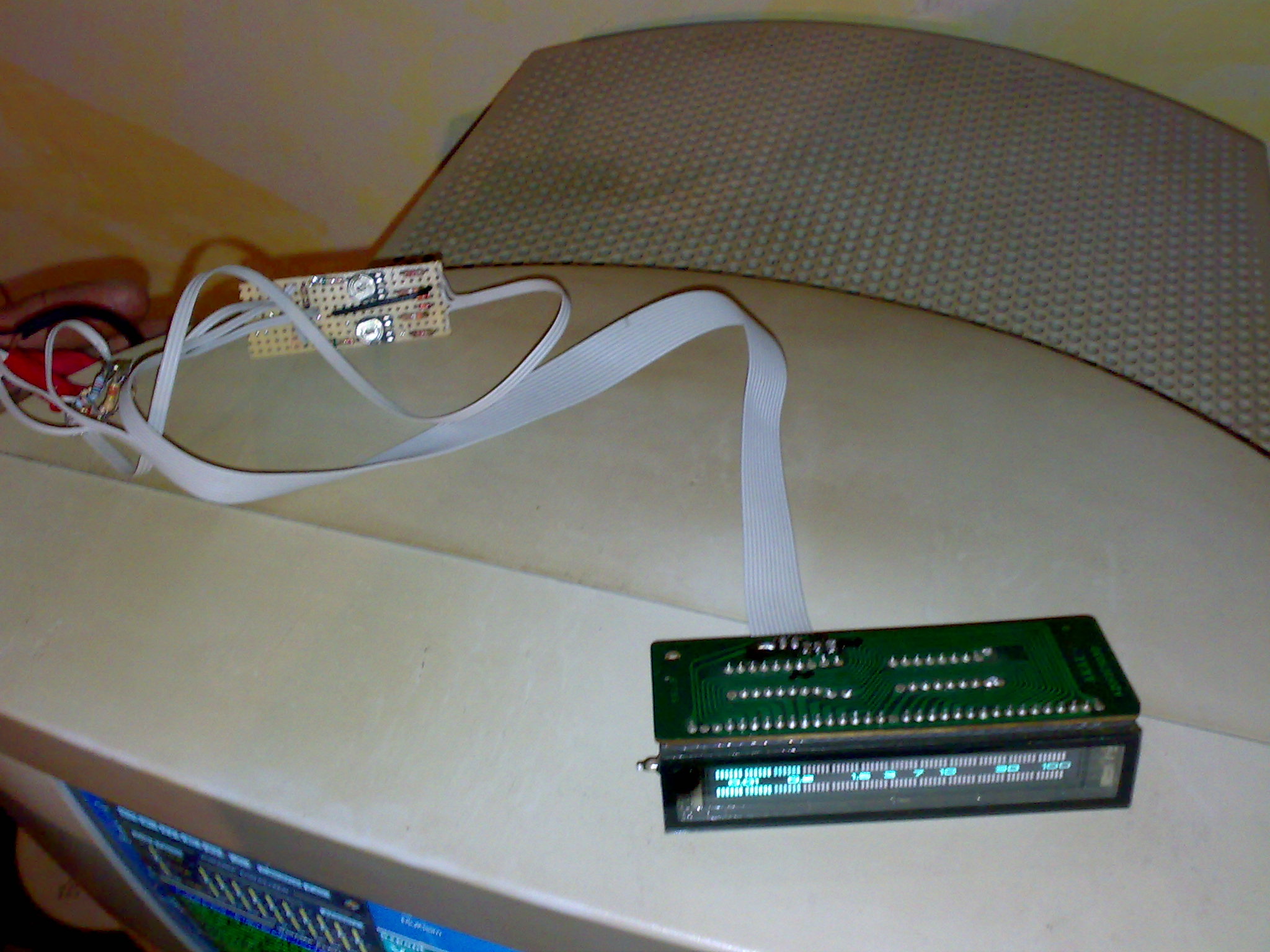 Volt itthon elfekvöben egy Akai erösitöböl kiszuperált VFD kivez.jelzőm. Összedobtam hozzá egy kis áramkört,és szépen müködik. Egyenlőre 15 voltos adapterről járatom,de valami dobozba kéne tennem,vagy egy erősitőbe beleépíteni. Meghajtás 15 voltról megy,erröl osztottam le a fütöfeszt,kb 2.3 voltra. nekem tetszik. pár kép: