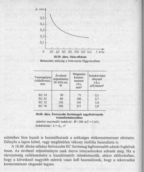 Kiszámolod a P-ből az I áramot és számolhatsz 3 - 5 A/mm^2 áramsűrűséggel... Kijön a keresztmetszet, amit a skinhatás miatt, ha úgy adódik, nem lehet egyetlen nagy vezetékkel feltekerni, hanem a frekvencia ismeretében kiszámolható, hogy a keresztmetszetbe milyen mélyen folyik még elfogadható nagyságú áram, ennek duplájára választba az átmérőt kiszámolható, hogy ekkora átmérőjű vezetékből hány darab kell a szükséges tényleges keresztmetszethez. ez a méretezés valahol a témák sűrűjében csatolva vagyon, remélem nem köveznek meg ha felteszem, nem találtam meg...