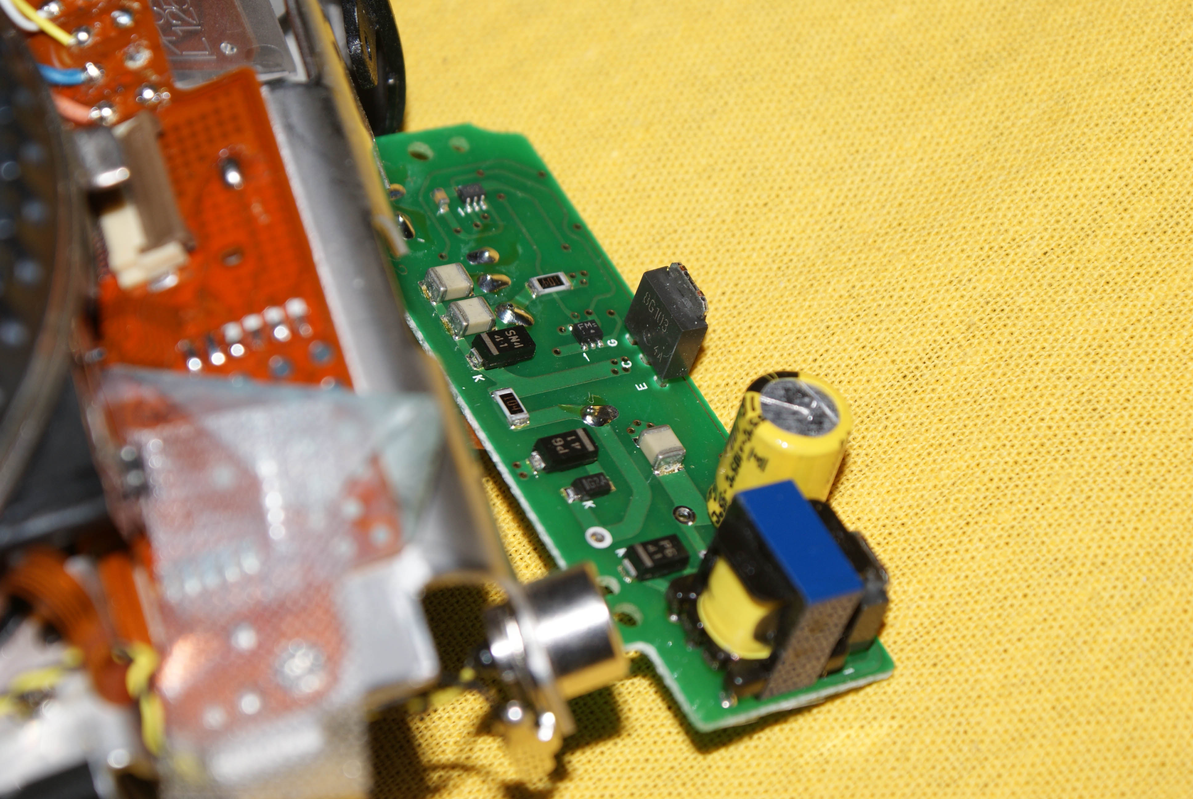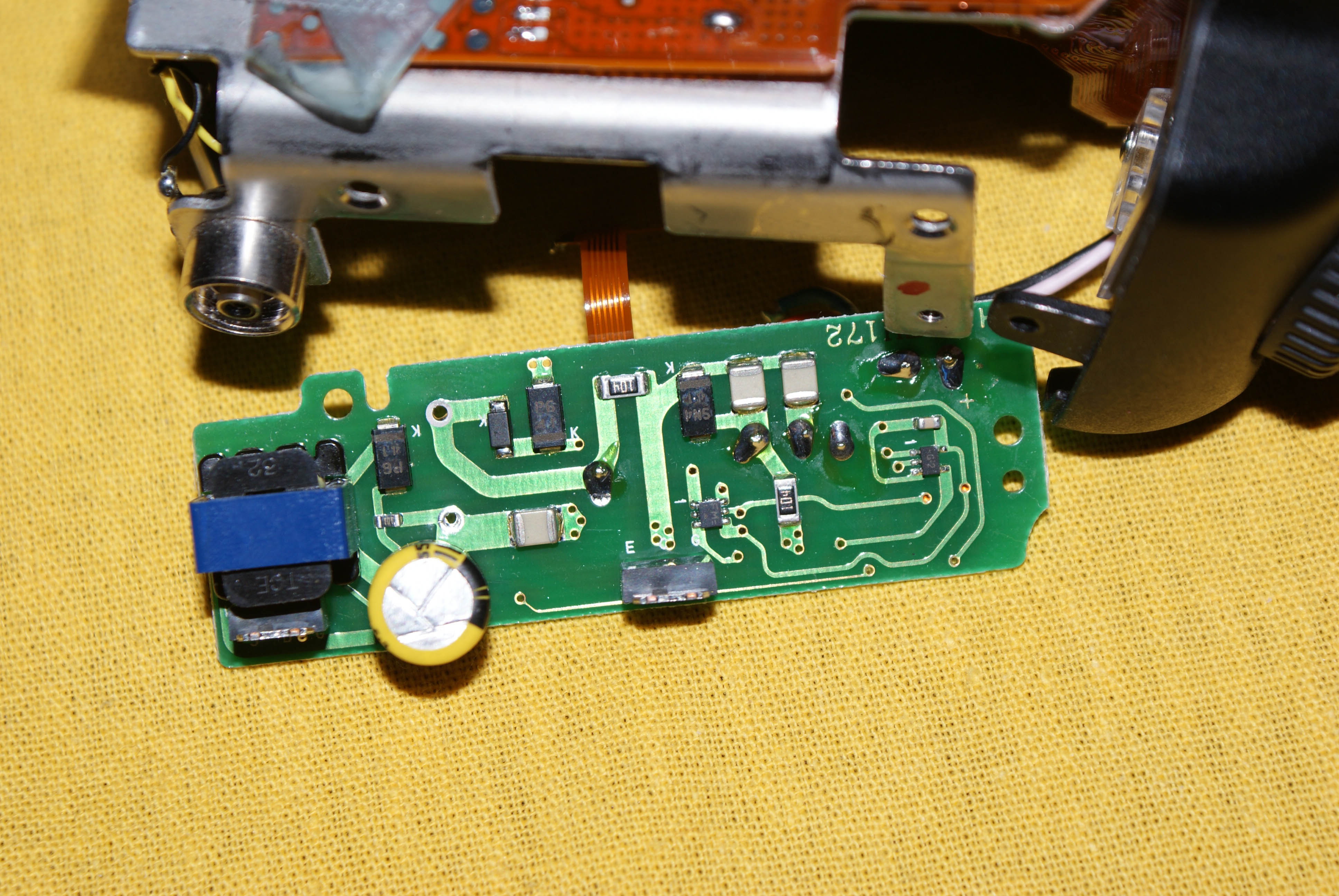 Ez az egy panel van? A másik oldalán mi van? Ezen a panelen nincs DC/DC konverter így első röffre, kéne legyen még valami, rendszerint a vaku ellátmányával közös panelen lakik 2 vagy 3 kapcsolóüzemű táp, ott vannak biztosítékok.