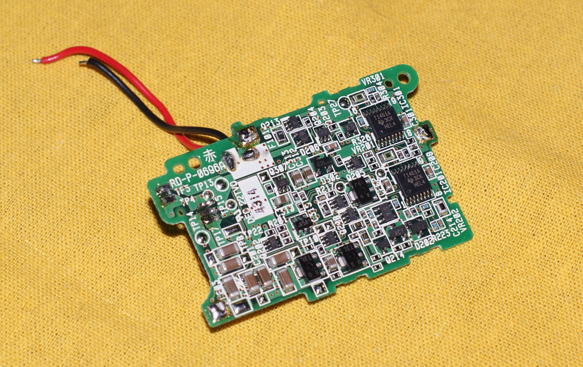 . A DC/DC panel a DC aljzat közelében, a markolat alatt egy fémlemezzel körberakva szokott lenni.