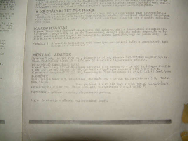 Üdv Laci. Tehát a betéted jó csak az adataira lenne szükséged? A tanyán elvileg fent van minden korabeli rajz , elküldtem Pihének és Ő tette fel.Sajnos a scannerem halott max fotózni tudok. Majd felteszem az összes lemezjátszó betétem képét , mert sokra már nem emlékszem vagy nem is ismerem.A lemezjátszód tányér gumija mind megvastagodott (ragyásodott) és szétporladt.Hasonló zöld színüek voltak mint a saszi.