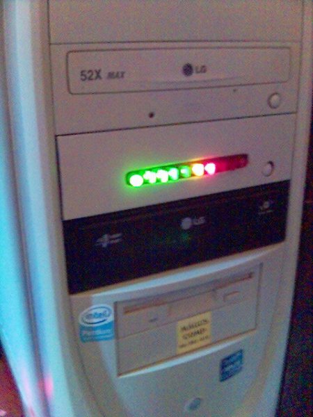 A működése pedig egyszerű: az alaplapi HDD LED vezetéke van rákötve egy LM3914-re és így VU meterként működik.