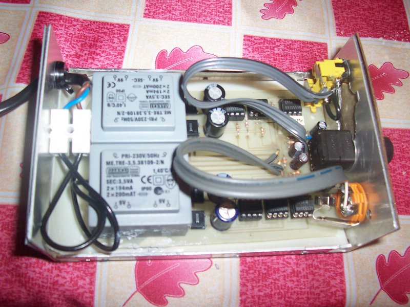 EZ a kis doboz egy gyári 14voltos kapcsi táp doboza volt aminek az elejére szbtam bakelitlemezből előlapot.(azt hiszem régi telefonhoz volt kapcsitáp, már láttam máskor is csak nem tudtam hogy egyszer erre is jó lessz).