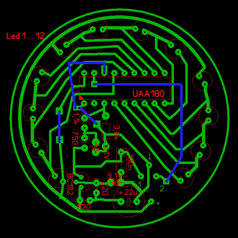 Egyébként a rajzod volt hibás,ha az 1.1k ott maradt volna a testen,akkor a bekapcsoláskor a legalacsonyabb impulzusszámra is világitott volna az összes led.