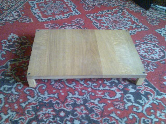Eddig csak 20 Wattnál izmosabb csöves "gityókütyüket" építettem. Ez volt az első kísérletem SE végfokkal. A VOX AC-4 sémáját választottam mert erről olvastam néhány jó dolgot plusz a családom sem csípte már hogyha a pincében hangosan tombolok. Mivel tele voltam viszonylag drága, több utas autóhangszóróval a kimenőt is mindössze 4 Ohmra csináltam elvileg. Azaz 5.2 Kohmról elvileg erre az impedenciára illesztettem. A kombóba meg be akartam tenni egy 150 Wattos(!!!!!) 4 utas nehéz hangszórót. De a doboz nélküli mérések meghallgatás során rájöttem, hogy valahogy a szerkó szinte mindenféle hangszóróval megy 4 Ohmtól felfelé. Vettem a börzén 100 Forintért egy repedt kónuszú 8 Ohmos hangszórót amit megjavítottam. Azzal is primán szólt igaz kisebb teljesítménnyel. Én a magas hangokat mindíg a Shadows együttes "öregapám zsebórája" c. számával próbálom le. Abban piszkosul csengenie kell a magas hangoknak. Ezt nem találtam fülre megfelelőnek, ezért a már meglévő 8 Ohmos hangszóróval párhozamosan kötöttem két db. olyan ősrégi 1 Wattos ruszki hanszórót (1GD28) melyek impedenciája 6.5 Ohm volt. Mégpedig kondi nélkül! És láss csodát bejött a a fejemben letárolt etalon magashang is. Azaz most az eredő kb. 5 Ohmon, mivel a hangszőrőlánccal párhuzamosan még egy 200 Ohmos védőellenállat is van. Miután ezt a hangszórócsoportot beépítettem a kombóba még a mélyhang hatás is javult pedig a nagyobb hangszóróm mindossze 20 centi átmérőjű. Ráadásul pedig a két oldalra helyezett hangszóróknak még lyukat sem vágtam. Dehát nyugdíjas lévén nincs pénzem eredeti Celestion Bulldog hangszórót venni. Ezenkívül a cucc sem VOX AC-4 már, hiszen abban néhány módosítást csináltam és a neve is Merkel.... átvp M ő-AA