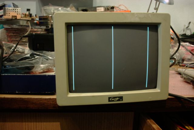 Ma rendrakás közben kezembe akadt egy régi apró (10") hercules monitor. Igazi ős kövület. Gyorsan kipróbáltam egy hercules kártyával ami ugyancsak a fiók mélyén porosodott és teljesen jól működött. Ezen fel lelkesülve elhatároztam hogy rászánom ezt a napot, hogy meghajtsam AVR-el is. Nem volt épp egyszerü, de sikerült. Aki már próbálkozott videójel előállításával mikrokontrolleren, annak lehet elképzelése a dolog nehézésgeiről. Mellékelem az első teszt képet. Egy ATTiny2313 -ason fut a program 32Mhz -en.