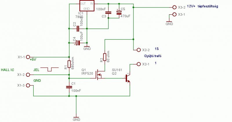 Sziasztok, elnézést hogy beleszólok az itt folyó beszélgetésbe, de ha meg engeditek, mondanák egy pár szót a hal kapcsolókról (érzékkelőkről), mert gyújtásvezérlésre elég elterjedten használják és szerintem is a leg alkalmasabb a jeladás céljára. Két fajta hal elven működő érzékelő létezik, hal szenzor, és a hal kapcsoló. A hal szenzorban hídba kötött hal elem található ez az alkatrész főleg a mágnesesség nagyságának érzékelésére használják olyan, mint egy mágnessel vezérelhető potenciométer (elektromos kerékpár gáz kar) gyújtás impulzusfigyelésre nem alkalmas bár mintha találkoztam volna valahol régen egy könyvben egy kapcsolással, de ma már az elavultnak tekinthető. A gyújtásra főleg a hal kapcsolók az alkalmasak, mert ezek az alkatrészekben hal elem mellet található egy erősítő és egy Schmitt-Trigger elem is, ami a nyitott kollektoros kimenetet vezérli, ezáltal a kimeneten négy szög jelet szolgáltat egy kívülről oda rakott felhúzó ellenállás mellet. Na de hogy ne legyen azért ilyen egyszerű a dolog a kapcsolókból is van kétfajta, az unipoláris és a bipoláris, és ha meg engeditek el is magyaráznám mi is köztük az eltérés. Az unipoláris fajtájú, ha mágneses teret érzékel maga előtt, akkor be kapcsol(a nyitott kollektoros kimenet testre kapcsol) ha nincs előtte mágnesesség kikapcsolva marad mármost a mágnesesség pólusa is számit úgy hogy ha előtte lévő északi pólusra kapcsol akkor az alkatrészt megfordítva már a délire fog, és ennél a pontnál hívnám fel a figyelmet arra hogy ha valaki szeretne illeszteni a Babetta lendkerékhez TLE4905 unipoláris hal kapcsolót (én ezt használom) vigyázzon mert fordítva kell a mágnes felé állnia. Amúgy ez a fajta hal kapcsoló kitűnő erre a célra mer elég érzékeny (a Babetta 6mili széles mágnesét 18mili szélesnek érzékeli) széles feszültség tartománya és elég jól bírja a hőt. A bipoláris hal mágnesesség érzékelése és működése teljesen más azt például északi mágneses térrel bekapcsolom majd akár a mágneses tér meg is szűnhet, de akkor is bekapcsolva marad, majd csak déli mágneses térerő megjelenése kapcsolja ki, persze ha itt is megszűnik a déli mágneses térerő, akkor is kikapcsolva marad, persze az északi –déli bekapcsolás-kikapcsolás hal megfordításával váltható. Na, mármost amit én használok elektronikát (lásd kedves barátom tárjának linkjét) az zárásszög vezérlést tartalmaz ezért nekem nem kel törődnöm avval, hogy milyen széles a négyszög impulzusom, mert a transzformátor töltési idejét az elektronika szabályozza ezért a Babetta lendkerékhez illesztet TLE4905 hal kapcsoló is vezérelni tudja. De más a helyzet a te által belinkelt kapcsolásodnál ott meg kel oldani, hogy a hal kapcsoló a fordulat feléig legalább bekapcsolva maradjon, mert ha nem a gyújtótranszformátor feltöltődési ideje (DWELL Idő) kevés lesz és akkor nagyobb fordulatszámoknál gyújtás kimaradás keletkezhet. A másik probléma meg az, ha sok ez az idő, akkor alacsony fordulaton melegedni fog a transzformátor és feleslegesen sokat fog fogyasztani a gyújtás. Ezért neked is javaslom e gyújtás elektronika beszerzését, amit én autó bontokból szoktam be szerezni, 4 ütemű Trabant- Wartburg –Wolksvagen típusokban fellelhető ára se borsos most a legutóbbi vételnél 2000 forintot fizettem érte. Én mostanában ETZ125-250 motorokba szerelem az eredeti gyújtó transzformátoruk mellé. A jeladó vagy az eredeti vagy egy alumínium tárcsára ragasztott mágnes darabka mert az elektronika lefutó élre kapcsol avagy akkor adja a szikrát amikor mágnes a hal elé ér . Még annyit elmondanák,(tapasztalatból mondom) hogy ha meg építed feltétlenül minden gyújtás próbánál legyen gyertya a gyújtó trafón, mert egy két szikra is elég hogy át üsse a trafót bár ez minden TCI és CDI gyújtásra igaz. Üdv nyemi.Bővebben: Link