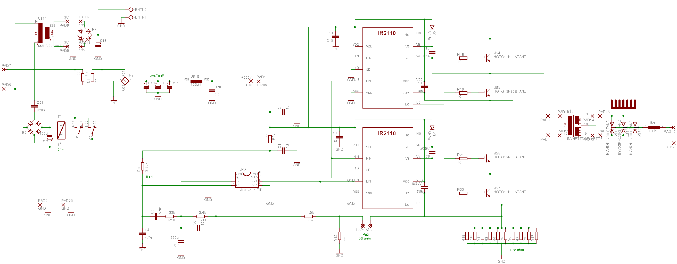 Akkor a 0,5R/0,5W-ost ugy is meglehet csinálni, mint a jo OROSZ szokás, egy 0,5 vagy 1W-s ellenállásra vékony rézhuzal feltekerve, de mivel itt az IGBT-k G-re menő áramot szabályozza ezért mindegyiknek egyforma menetszámmal kell rendelkeznie nehogy az egyikre kevesebb a másikra több volt menjen!
