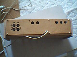 No ezen felbuzdulva egy kisebb teljesítményű erősítő is elkészült, ez 100%-os fadobozba raktam bele jó nagy kondikat (kikapcsolás után sokáig tartja a feszt