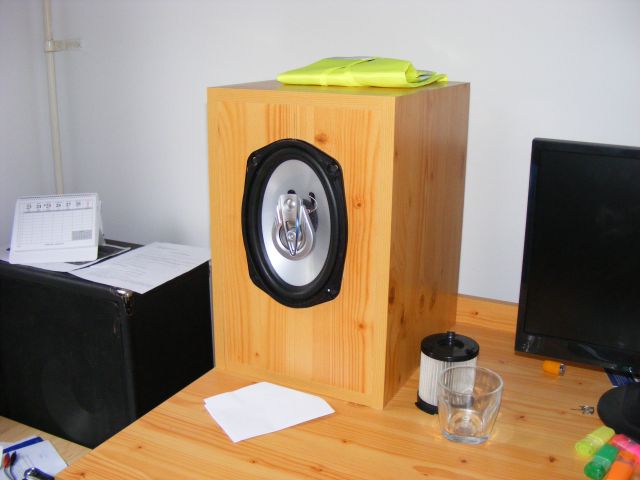 Sziasztok! Ha lenne pénzem, én is építenék egy pár ilyen monstrumot. Min 20-as acéllemezből lenne, aminek a két oldalát keményfával burkolnám. Valószínű ez egy jó darabig álom marad. Addig maradok a jól bevált téglatest formánál. Nemrégiben kaptam egy pár 100 W-os ovál hangszórót, saját számításaim alapján terveztem hozzá dobozt, bútorlapból építettem meg, majd a belsejét szivaccsal béleltem. Így kb 4000 Ft-ból lett egy pár 28,5L-es asztali hangdobozom. Egy 2x25W-os erősítővel hajtom, és meg vagyok elégedve a hangzással.