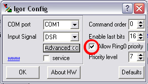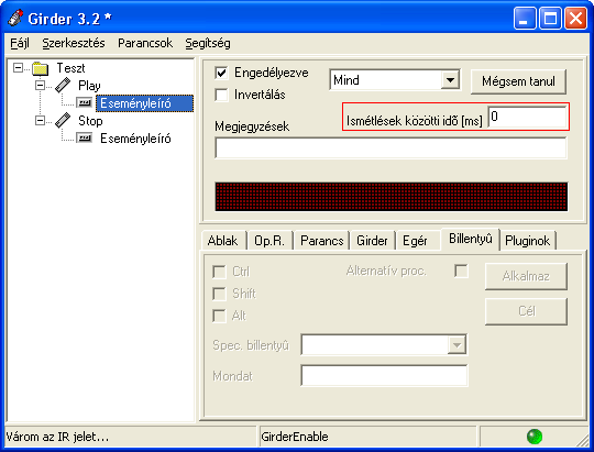 Ebben csak annyit tudok mondani, hogy a IR vevő típusától függően kell rajzot választani. Mivel én csak TSOP17xx -s sorozattal építettem meg, így csak ezzel kapcsolatban vannak tapasztalataim. Ez az a rajz amely alapból kint van a cikkben (nem a link alatt szereplő kapcsolások). # tallerbator: "megnyomok egy gombot amire mondjuk a Firefox-ot állítottam be akkor kétszer indul el" "Nem lehetne azt beállítani, hogy mondjuk fél másodpercen belül csak egy jelet fogadjon el?" Csatoltam két képet. Az egyiken az Igor pluginnak a beállításaiban található "Allow Ring0 Priority" -ből ki lehet venni a pipát mert erre csak a Windows 98 -nak van szüksége. A másik képen pedig "Ismétlések közötti idő [ms]" itt magától érthetődő, hogy az ismételt jelek közti időt tudjuk beállítani ms -ban.