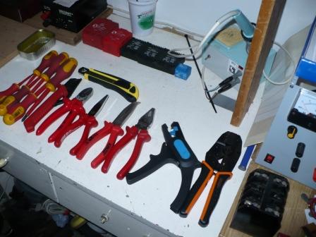 Villanyt szerelni elég régen jártam, akkor még szinte elérhetetlen vágyálom volt számomra egy tisztességes szigetelt oldalcsípő fogó. Az egyik öreg szakitól vettem meg a sérült szigetelésű, egyik oldalt letört hegyű fogóját, és több évig dolgoztam vele. Még ma is meg van valahol, szinte ugyanolyan állapotban... Mostanra e téren is egy kicsit jobb a helyzet: kedvenc szerszámos kofferomban pihen az elit csapat java. Sajnos ami nincs benne, gőzöm sincs, hová lett elpakolva: néhány szigetelt villáskulcs, a bizti-cserélő fogó és az 1000V-os kesztyűm nincsen sehol. Remélem, hamar előkerülnek a kupiból. De ami benne van, azt megmutatom.
