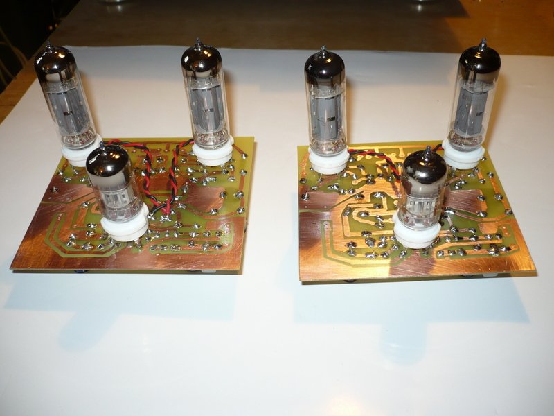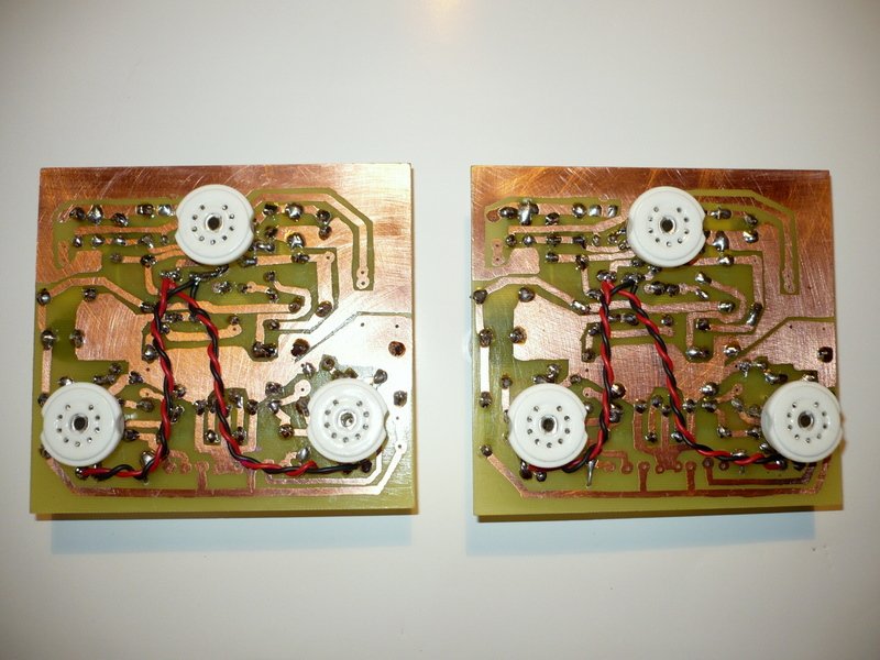 Sziasztok : tegnap is mutattam valamit , ma is mutatok ! Ezt ma foraszgattam be véglegesre két panel csupán de ez is csöves , ebben is 3 darab csövecske van oldalankét !Szóval ez egy 6P14P PP / EL84/ 2 darab panelje . Ez is kézzel van rajzolva semmi extra vonalvezetés a szó szoros értelmében szabadon .