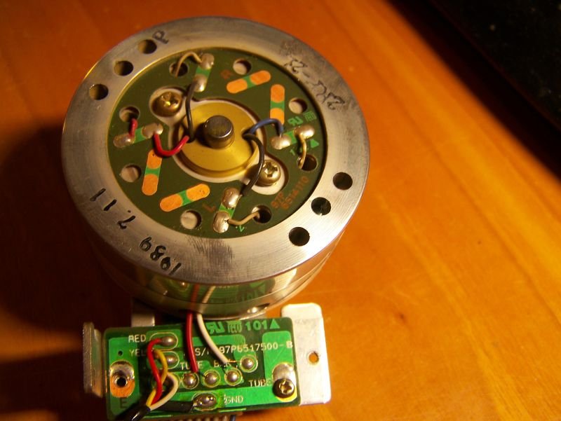 Ha a motor már szépen pörög, félsiker. A forgórész tekercseinél nem lesz gond, kösd sorba, és egy erős LED-et forrassz a két végére. (A LED-re vigyázz, mert ki lehet égetni ezzel! Nem baj ha van egy soros 100-200 Ohm előtte). Az álló tekercsek kivezetései nem egyeznek az enyémmel. Nálam csak 3 kivezetés jön ki alul, a két tekercs gyárilag sorbakötve, persze "forditva, szemben". Ezért leszereltem a fejdobot, és a beépitett nyáklemezen az egyik tekercs kivezetését átkötöttem belül. (Ez egy műtét volt!). Most annyit kel tenned, hogy leméred a kivezetéseket Ohm -osan, és megpróbálod rákötni a bázis á.k. meghajtó kimenetét egy 10-15 Ohm -os soros ellenálláson keresztül. Itt most próbálgatni kell. Szia.