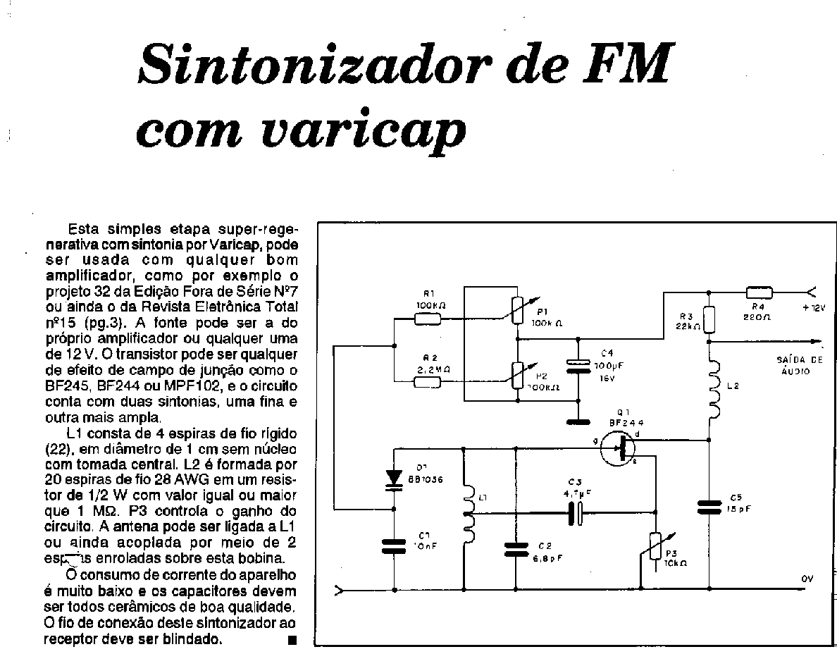Én sem tudok franciául, de ez nem is baj, mert úgyis portugálul van. (ráadásul brazíliai, igaz így sem tudok) azonban a kapcsolás egy szuper-regeratív vevő, az nem derül ki hogy milyen sávra, hivatkozik egy Revista elektronica folyóirat 32 projektjére. Ha ezekután érdekel, a menetszámok: L1: 4 menet 1 cm átmérőre L2: 20 menet 1/2 W 1 Mohm-os ellenállásra 28 # AWG huzalból