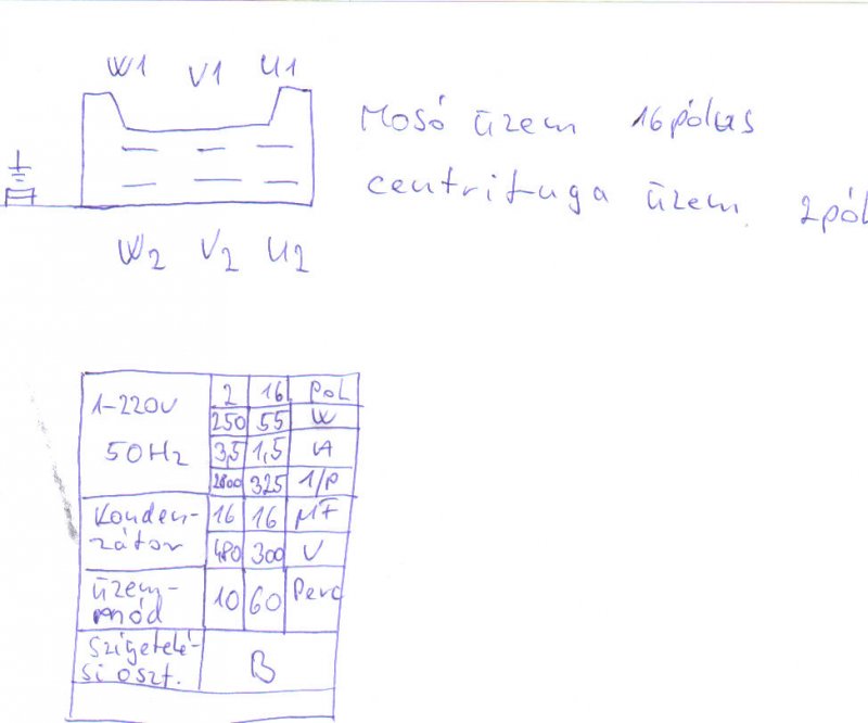 Van egy automata mosógép motor amit beszeretnék kötni ez a motor Cseh gyártmányú gépből való és a kivezetéseket elvágták, így nincs semmi tám pontom.Amit tudok róla 6 kivezetése van + a test. a pontokon megmértem az ellenállásokat, de csak ennyi !
