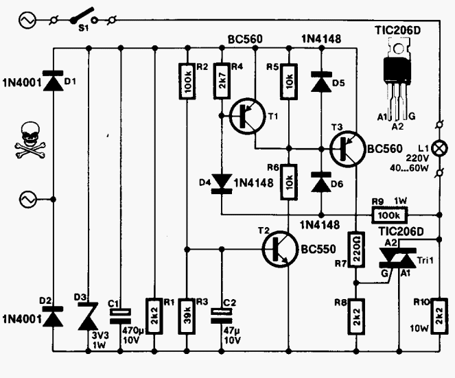 Folyton "kivágja" az egyik szobánkba az égőket a csillár Van itt ez az Elektorból származó kapcsolás. Az a dolga, hogy egy izzót lágyan kapcsoljon fel. kb. 700ms után kapcsolja rá közvetlenül a tirisztor a hálózati feszt. Aggodalmam: Igaz, hogy a D2-es dióda miatt az egyik félperiódusok fognak rájutni a lámpára?