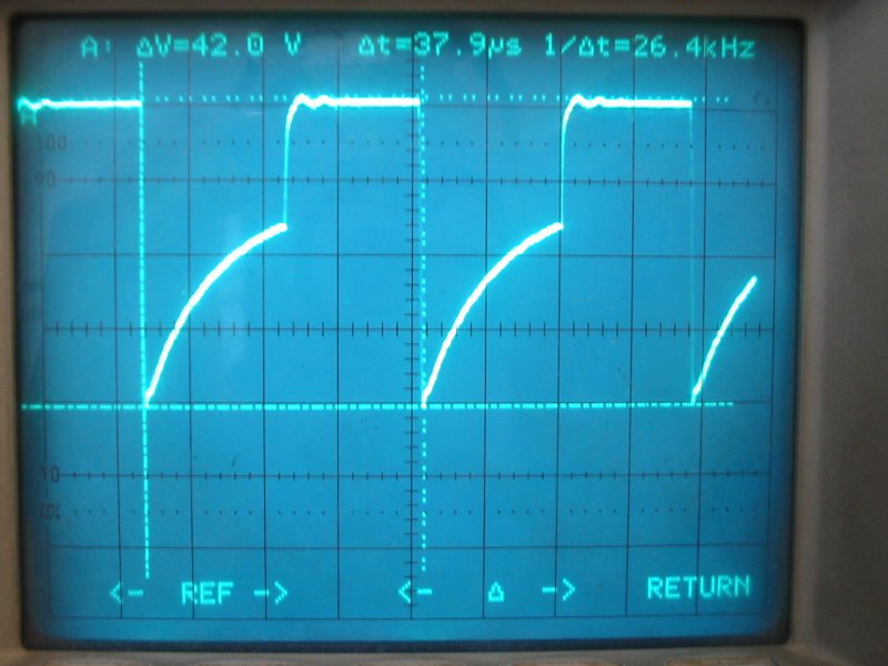 Összeraktam próbaként a vezérlést UC3845-el, a következőket tapasztaltam: gate trafó nélkül a feten csodaszép négyszögjel van, de ha rárakom a gate trafót amit E25-re tekertem 4x35 menet, akkor a mellékelt képeken látható miket mutat a szkóp. Szerintetek?