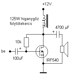 „1. Mivel az 1 tranyós invertál, a hangszórót fordítva kell bekötni, a + lába megy a földre, a - a kimenőkondira.”
