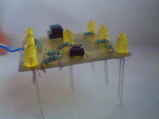 A led lábait már Béla levágta, miután sikerült megprogramoznom a PIC-t. Egy cuki kis dobozkába fogjuk majd berakni, barátom most ment el megvenni. Valamint, a csipogónak meg van a helye, tehát bármikor be lehet rakni.