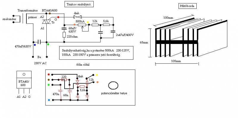 Szépen néz ki,de nem látom a hűtőbordát,ide azért már kell egy nagyobb,ha állandó üzemet is bírnia kell.Anno ,sok évvel ezelőtt én is csináltam ilyesmit,ma is működik,de már nem használom heg. trafóhoz.