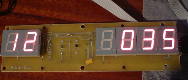 Sziasztok! Ez inkabb ki mit programozott mert nagyon egyszeru a kapcsolas.Van tobb ilyen kijelzom, MAX7219-el szerelve.(ez az okos kis IC 8 db. 7 szegmenses kijelzot tud kezelni, Szinkron soroson komunikal, es 10MHz orajelig mukodik. Ez utobbi azert jo, mert mikor irunk ra nem foglalja hosszu idore le a processzort..) Gondoltam a mar meglevo ATMega8 probapanelomra rakotom es megirom hozza a drivert.Mukodik