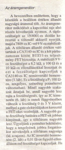 Hát ez a kapcsoló automatika nem valami kifinomult. De az általam készített kapcsolásnak csak akkor van értelme, ha van nullátmenet. De itt nincs, mert kondi van és az áramgenerátor állandó árammal táplálja a töltőt. De meg lehet építeni hozzá, csak akkor nem használható ki a kapcsolás olyan irányú előnye, hogy ha átmeneti ellenállás van a töltővezetékben, akkor is "pontosan" kapcsol. üdv! proli007