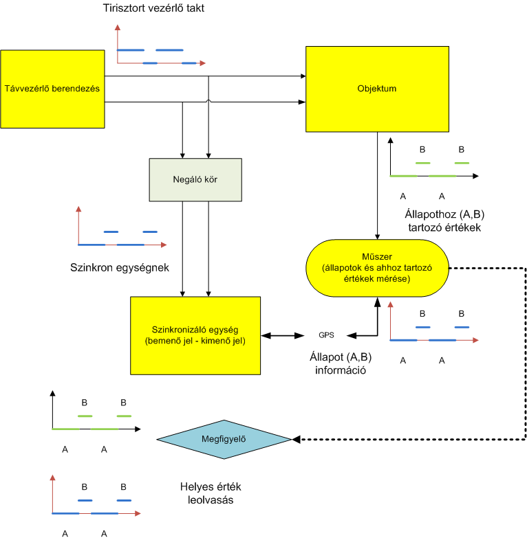 ) , ezért GPS-en keresztül információt kap egy szinkronizáló egységtől (kék színű taktolási függvény).