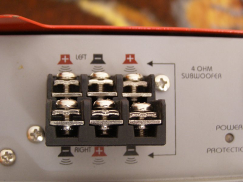 Elméletileg ez egy 2.1es erősitő,tehát az 1es csatorna már hidalt mélynek,de a másik sztereo csatorna is hidalható ,tehát a 2*x wattból is lehet 1szeres teljesitményt kivenni (igy lehet akár 2 mélyed is pl)..Ha van egy jó kép a hangszórócsatlakozásról megnézem neked.Sajnos nem találtam én sem ezt a szériát csak az ujabbat..