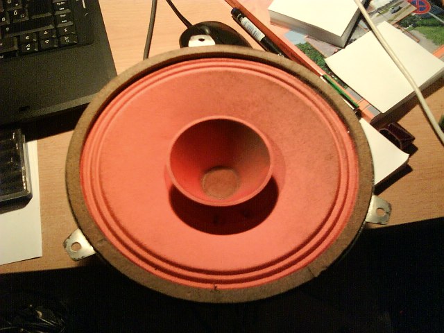 ) a képen látható hangszórócskát találtam. Burgdavid aztán felvilágosított, hogy ezek egészen jó kis hangszóró. El is határoztam, hogy építeni kellene neki valamilyen korrekt dobozt. Namost ahoz, hogy ez meglegyen hiányzik még egy darab hangszóró. Ha valakinek van ötlete, hogy merre kutakodjak annak örülnék
