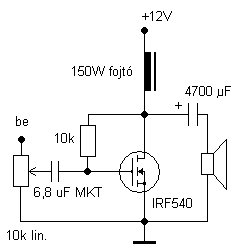 Próbaként egy erősítő trafó primer tekercsét kötöttem be fojtóként ami 8ohm körüli.Elsőnek egy 5w 4ohm pc hangszórón indítottam és ami elsőre megütötte a fülem az a kellemes már már csillogó magas hangok.Majd rákötöttem az oszlop hangfalra és kiderült hogy nem csak a magas hanem a mély hangok is szépen megvannak.Viszont valamiért nagyon torzít én DVD-ről hajtom és nagyobb hangnál már hallani hogy erőssen torzul a hang.Én irf 540-el építettem meg mert ebből még maradt 2db a multkori vf2 rendelésből. A nyugalmi árama 820mA és 12V pc tápról megy,de a fet D-S lábán 3,5V a trafó tekercsén meg 7,7V körül mozog.Lehetséges hogy túl sok feszültség jut a trafóra és kevés a fet-re ezért torzít ennyire?Mert hirtelen másra nem tudok gondolni.Neked egyébként mennyire tiszta a hangja nagyobb kivezérlésnél, illetve hány voltról üzemel most?Te mérted hogy hány volt esik a tekercsre és mennyi a fet-re?Egyébként a hangjával nagyon megvagyok elégedve, csak a torzítás okára kellene rájönni.