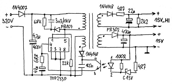 Szintén a lengyel fórumról itt van egy kész rajz, optocsatolóval. Több példányban megépült már és úgy néz ki nagyon letisztult dolog. Én most ezen dolgozom. Az IR 2110 változatnál is lehet két táppal dolgozni, és akkor nem kell a kiegészítő lehúzó áramkör ami a booster kondit töltögeti. Én próbapanelon kipróbáltam a 2110 gyári ajánlását és az szépen működött dual forward-ra.