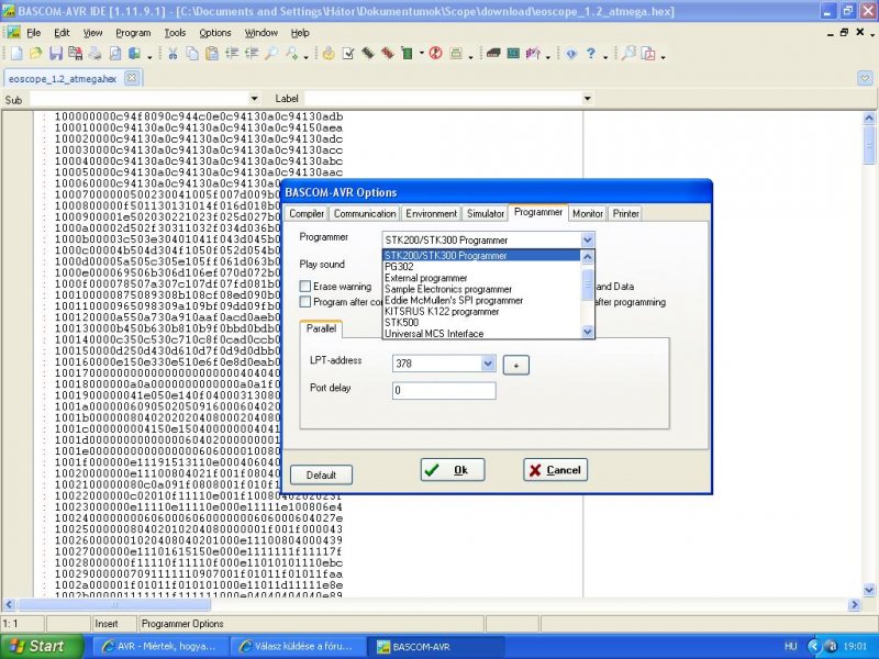 Szóval megépítek mindent, csatlakoztatom a cuccost a géphez a kábellel, és a programot beleégetem a mikroprocesszorba. Nem tudnátok megmondani, hogy milyen programmal csináljam? A BASCOM AVR jó erre a feladatra? A program .hex és .syx -ben van meg. Előre is köszi: Petya