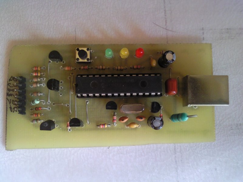 Én is magam építettem a PicKit2 klónt, furatszerelt alkatrészekkel (U2=MCP6002, Q1=IRFD9024 - ide is jó az IRF7314, Q7,Q8,U5 N fele =BS170, U5 P fele=IRF7314 két fetje párhuzamosan, D3,D4=145819, D1=1N4148, Q6=BC640, Q2,Q3,Q4,Q5=BC639). A tápfesz kapcsoló IRF7314-t nem tudtam furatszereltben beszerezni (so-8 / dip-8 átalakítón van). Az eredeti kapcsolást építettem meg, csak néhány apró módosítással: Az L1-el sorban betettem egy jumpert, a Q4 kollektora és a táp közé egy 100k ellenállást. A fet-ek gate és source kivezetései közé mindenhova 100k ellenállásokat. Segítségükkel az áramkör a kontroller nélkül bemérhető. Az EEProm beépítésénél a A0 kivezetéseket is célszerű 3-as jumper közepére vinni (táp és föld közé). Ezzel lehetőség van 24F512 és a dupla kapacitású 24F1025 használatára is. Az egész próbapanelen van, nagyon jól működik. Ha rendeled a pic-eket ajánlom a ChipCad Kft Kft-t. Furatszerelt (DIP) verziók nettó árakkal: 16F628: a 16F628A olcsóbb: 16F628A I/P 390 Ft 16F648A: 16F628A I/P 440 Ft 16F87: 16F87 I/P 540 Ft 16F88: 16F88 I/P 580 Ft 16F886: 16F886 I/SP 460 Ft !! Lépésenként haladj: Elsőnek egy egyszerű led villogót építs (a majdani komolyabb készülék kontrollerével, egy dugaszolós próbapanelen.) Kipróbálhatod az égetődet, a programozást, a program írását. Késöbb jöhetnek a komolyabb dolgok... |