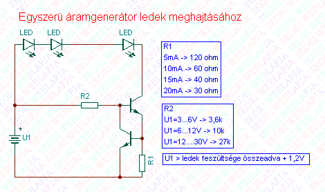 "Egyszerű áramgenerátor ledek meghajtásához" Skori weblapjáról
