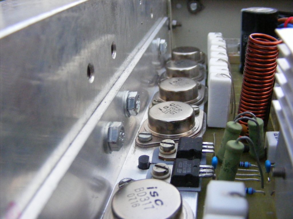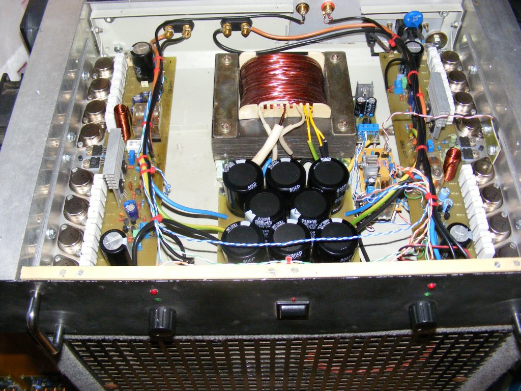 Meg a sok puffer (80.000uF) kompenzálja valamelyest a trafó gyengeségét a nagy impulzusoknál.