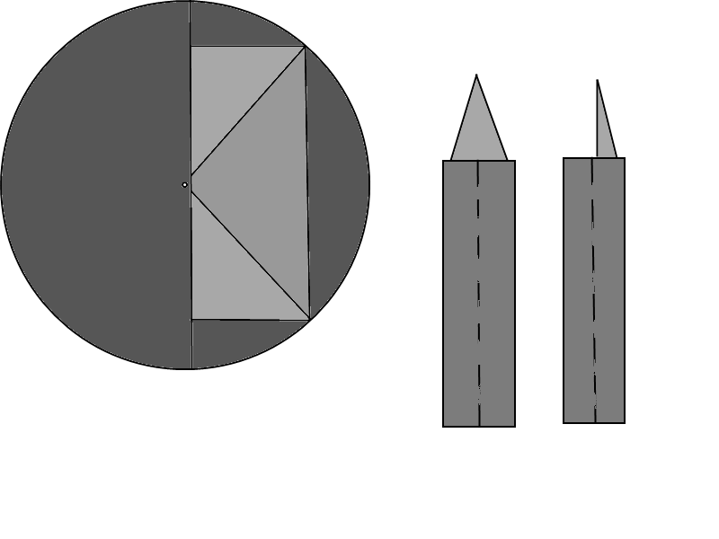 Készítettem egy rajzot az aláköszörülésről. Nem mérvadó, és nem is mérethelyes, csak tájékoztató. Az eltolás túlzott, hogy jobban lehessen érzékelni, miről is beszéltem. A félbeköszörülés szögével is lehet variálni, hol legyen az él (elforgatás). Ha hátrébb fordítjuk, meredekebben emelkedik az éltől az aláköszörülés. Ki is lehet köszörülni a kilépőnél kúposan lelapolva. A rajz mellékelve.